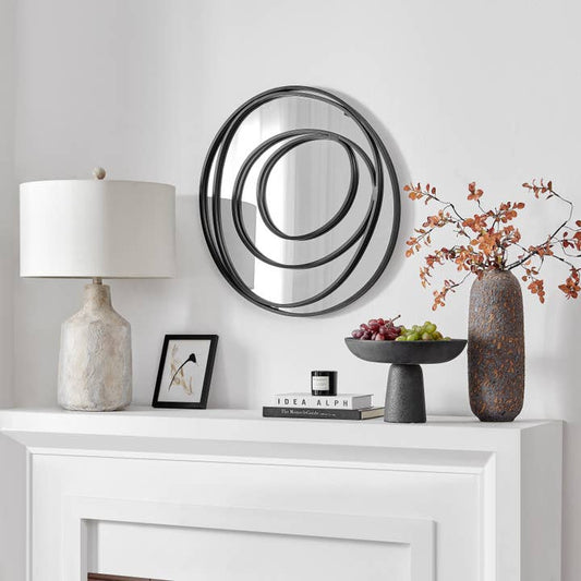 Sonya Continuous Circles Wall Mirror – 25.5-Inch with Black Iron Frame